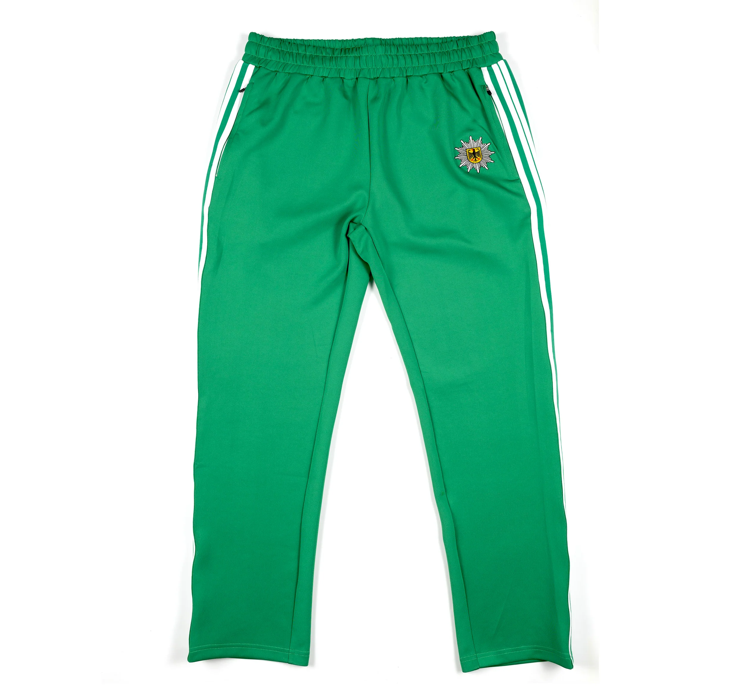 We are pleased to present our reproduction of a 1980s German Police Tracksuit. Every detail, from the vibrant color palette to the classic stripe accents, is designed to replicate the original German police tracksuit. Tailored for a relaxed and comfortable fit, these classic style tracksuits are slightly different from the slim fit modern tracksuits of today. Each set includes both the jacket and matching pants for a coordinated look. You may notice that the German Police symbol on the jacket differs from that on the pants. The breast jacket symbol is for the state of Baden Württemberg, while the thigh symbol is that of the German Federal Police. This is to differentiate these from the originals of the 1980s, while still providing an authentic flair.
